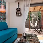 La Roulotte Du Tzigane Appartement van 30 m^2 ligt op 10 minuten rijden van het strand Garoupe en biedt wifi voor zaken of vrije tijd. Het 1-slaapkamer appartement omvat een terras met uitzicht op de tuin.